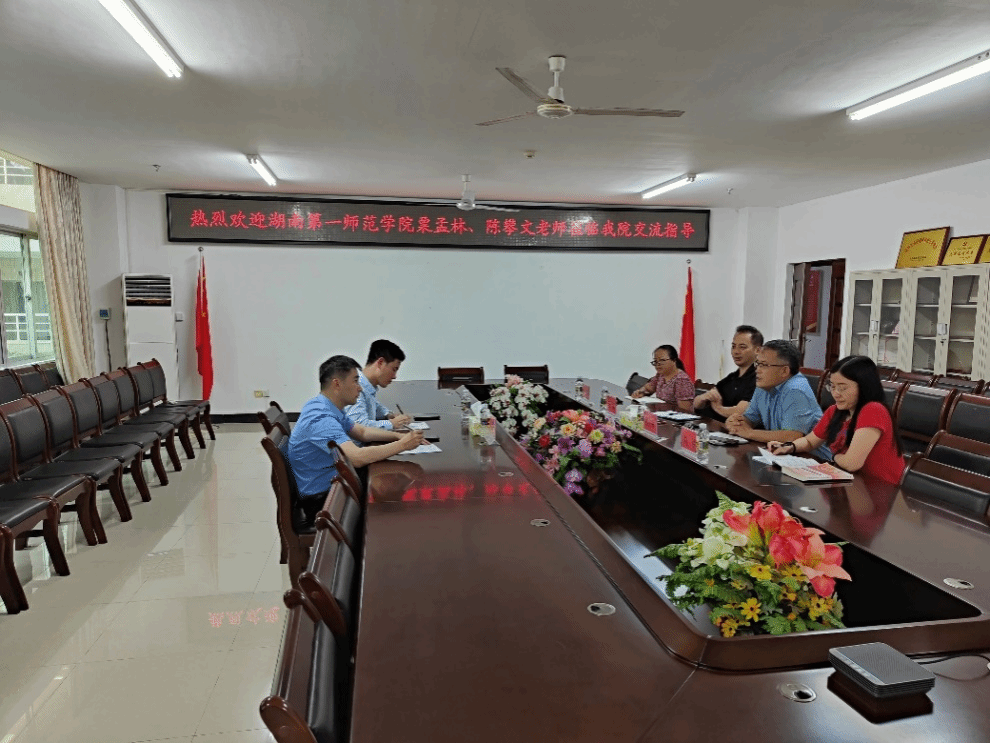 4月11日上午,湖南第一师范学院马克思主义学院国家社科基金重点项目(项目名称为:调查研究在习近平新时代中国特色社会主义思想实践课中的运用)课题组粟孟林、陈攀文一行来永利官网调研交流。永利集团88304官网蔡文举副院长、王一闳副院长、习近平新时代中国特色社会主义思想概论教研室主任刘涵、骨干教师方英群参加交流。
