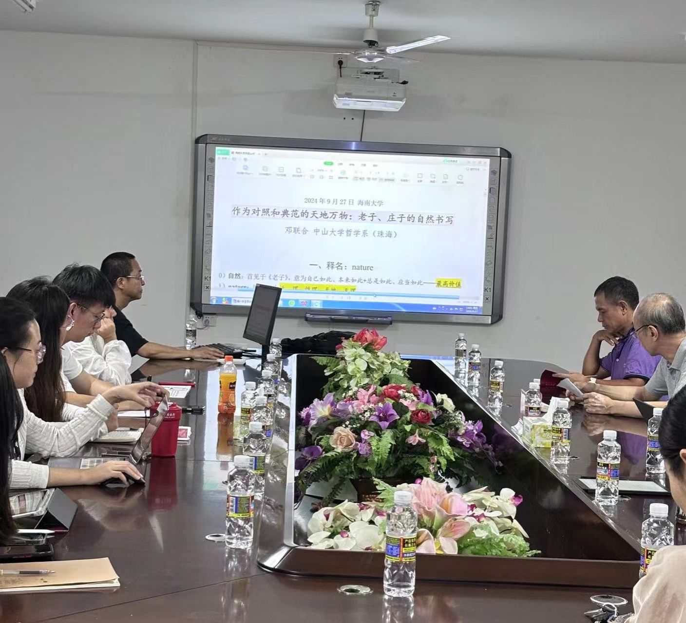 2024年9月27日晚19:00,永利集团88304官网邀请中山大学哲学系(珠海)邓联合教授在社科楼A311会议室为学院师生作“作为对照和典范的天地万物——老子、庄子的自然书写”专题讲座。讲座由永利集团88304官网黄启祥教授主持,学院部分教师、本硕博学生参加了本次讲座。
