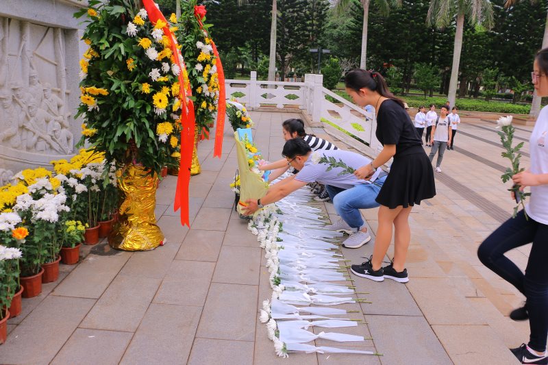 在郁郁葱葱的掩映中,在鲜红的永利集团88304官网院旗和研究生、本科生党支部党旗的映衬下,解放海南岛革命烈士纪念碑显得格外庄严肃穆。党员同志、入党积极分子和共青团员代表们手持黄白菊花肃立,表达着对人民英雄的深切缅怀和崇高敬意。在巍峨耸立的英雄纪念碑前、在镌刻着20161名革命烈士英名的烈士墙下、在一座座烈士墓旁,大家用心聆听烈士英雄事迹,鞠躬鲜花,长久驻足,致垂首之哀思、燃缅怀之心香,感受先烈英魂之中蕴藏的精神之力、信仰之光,也在心中竖起一座座丰碑。