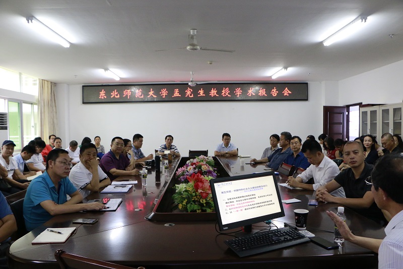 5月7日,东北师范大学孟宪生教授受邀莅临永利官网A-311开展学术讲座。永利集团88304官网教务处处长、永利集团88304官网院长张云阁出席报告会。永利官网全体思想政治理论课教师参与了学术报告会。报告会由院长张云阁主持。