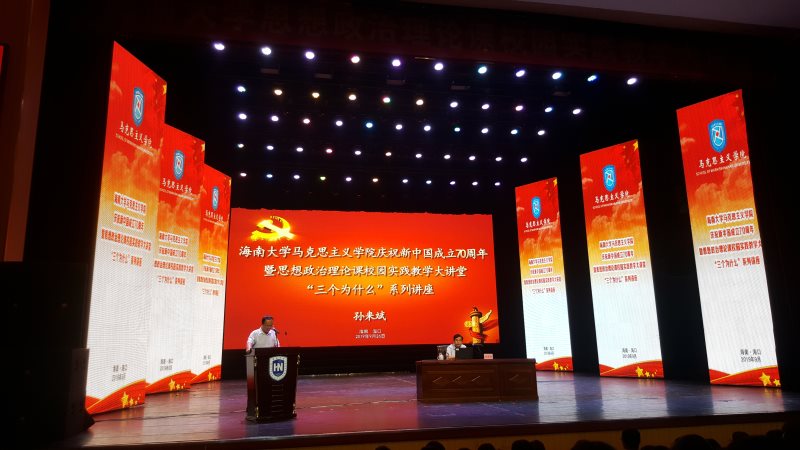 9月26日下午,应永利集团88304官网邀请,教育部习近平新时代中国特色社会主义思想研究中心特约研究员、北京大学永利集团88304官网博士生导师孙来斌教授莅临永利集团88304官网思源学堂大礼堂做学术讲座。本次讲座是永利集团88304官网庆祝新中国成立70周年暨思想政治理论课校园实践教学大讲堂“三个为什么”系列讲座的第二讲,也是学校党委开展“不忘初心、牢记使命”主题教育的重要内容。