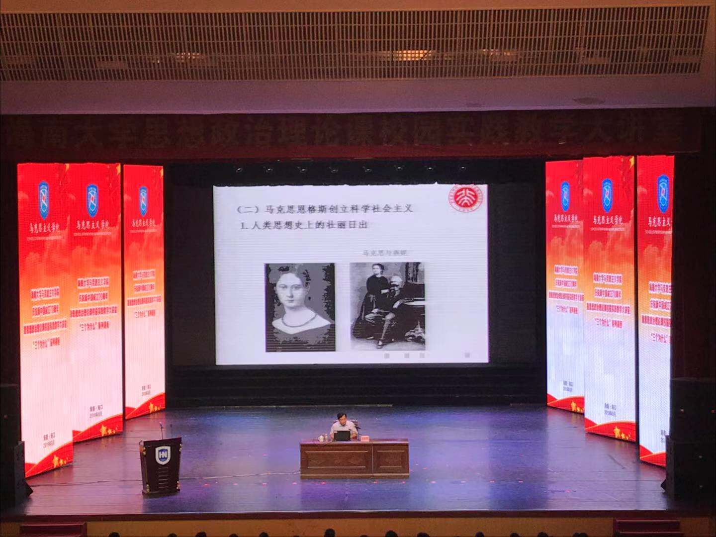 永利集团88304官网党委书记武耀廷,副校长胡新文、王崇敏、梁谋、叶光亮,校党委常委、组织部部长韩淑梅,校党委常委、宣传部部长谭勇,各学院书记、副书记,全校各党支部书记,永利集团88304官网思想政治理论课教师,2018级部分本科生共计1000余人聆听讲座。讲座由马克思主义副院长王善主持。