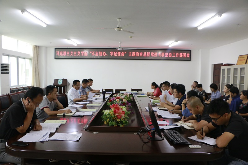 张井富对学院“不忘初心、牢记使命”主题教育专项整治实施方案进行了解读,对相关工作作具体部署。会上,张井富公布了学院微党课大赛评选结果:中国化马克思主义教研部党支部与中国近现史纲要教研部党支部、研究生党支部获一等奖,思想道德修养与法律基础教研部党支部、本科生党支部获二等奖,马克思主义基本原理教研部党支部获三等奖,中国化马克思主义教研部党支部与中国近现史纲要教研部党支部、本科生党支部获优秀组织奖。