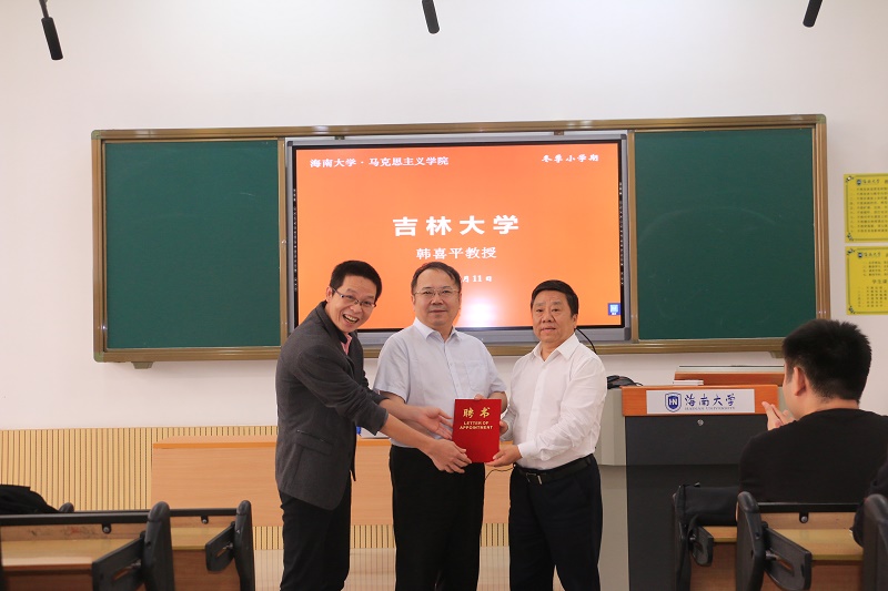 1月11日至1月12日,永利集团88304官网2019-2020学年冬季小学期名家讲堂第七讲在5号教学楼112教室举行。吉林大学韩喜平教授应邀就“中国特色社会主义政治经济学”的相关知识为永利官网同学进行授课。院长张云阁出席并为韩喜平教授颁发永利集团88304官网“冬季小学期授课外聘专家”证书。讲座由思想政治教育系主任陈招万主持。
