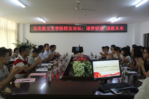 9月11日下午,为贯彻落实海南省委宣传部与永利集团88304官网共建永利集团88304官网的共建内容,进一步提升马学科学生培养质量,充分利用校友资源,帮助在校研究生合理规划职业生涯,提升就业竞争力,永利集团88304官网主题为“逐梦研途 成就未来”的校友论坛在社科楼A311举行,为学院系列校友论坛活动拉开序幕。