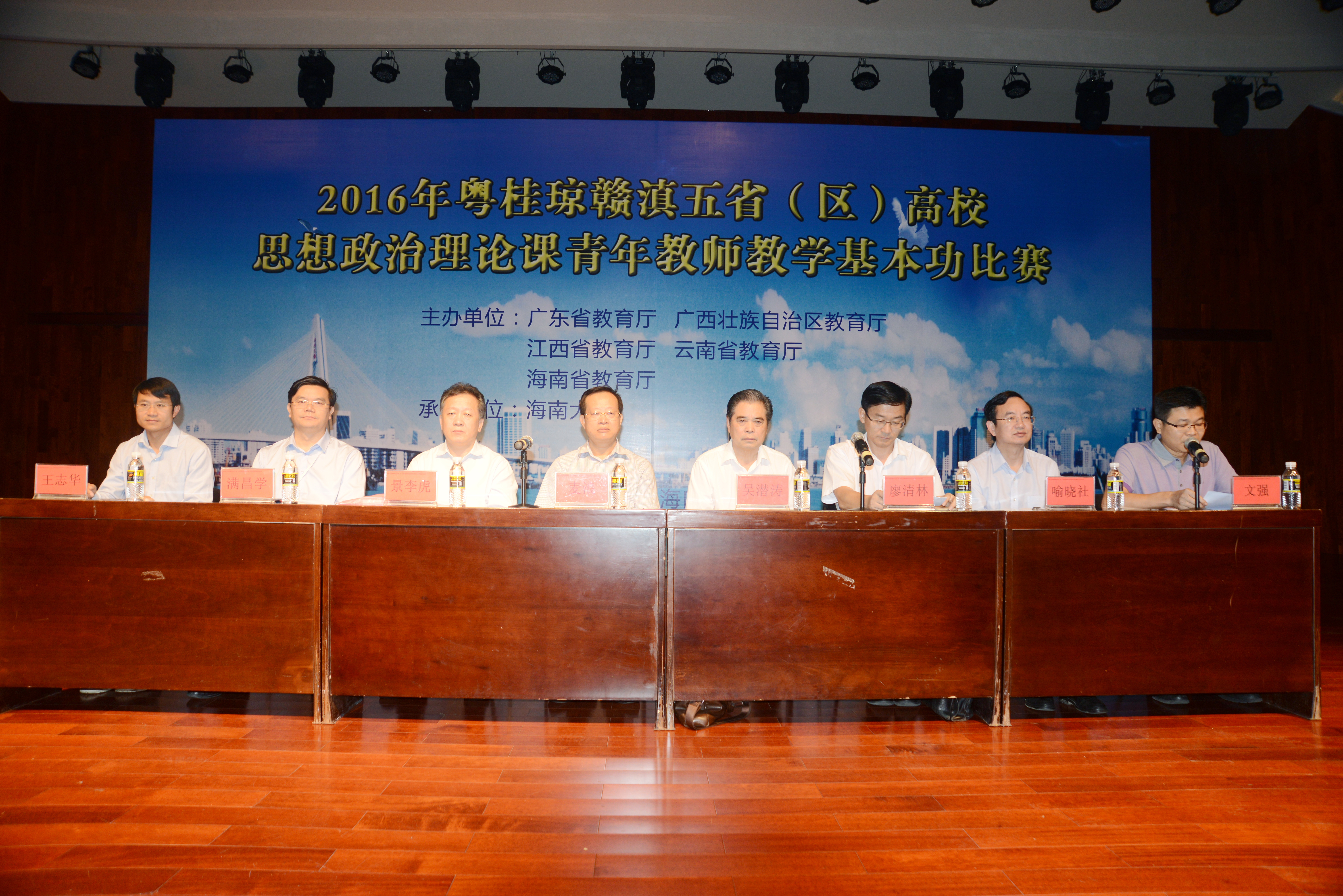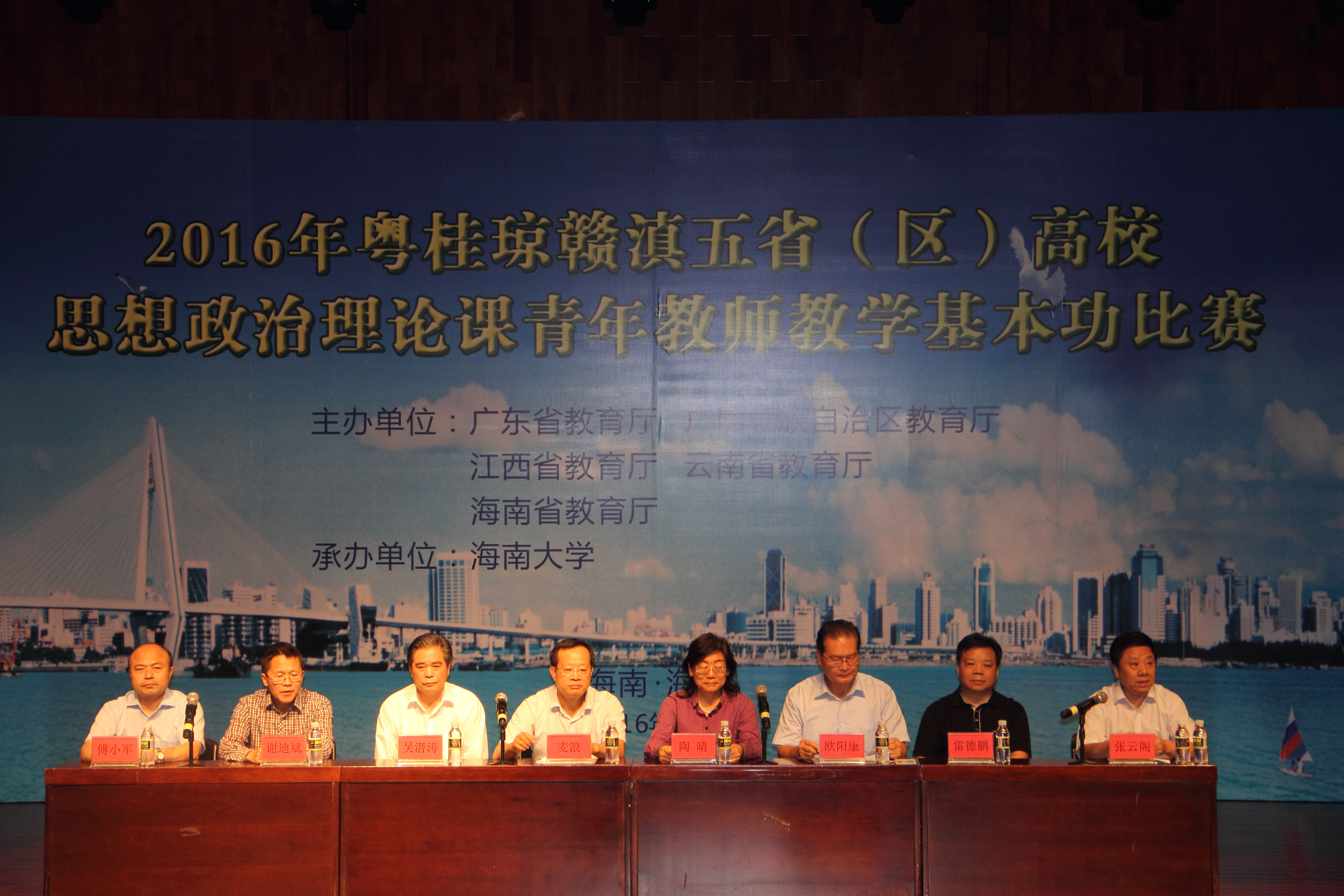 2016年11月2日—5日,第八届粤桂琼赣滇五省(区)高校思想政治理论课青年教师教学基本功比赛在我校隆重举行,省委教育工委专职副书记麦浪,广东、广西、海南、江西、云南等五省(区)教育工委、教育厅有关负责人,永利集团88304官网党委常务副书记廖清林出席,来自五省(区)近100余名教师代表参加开幕式。会议由海南省教育厅思政处处长文强主持。