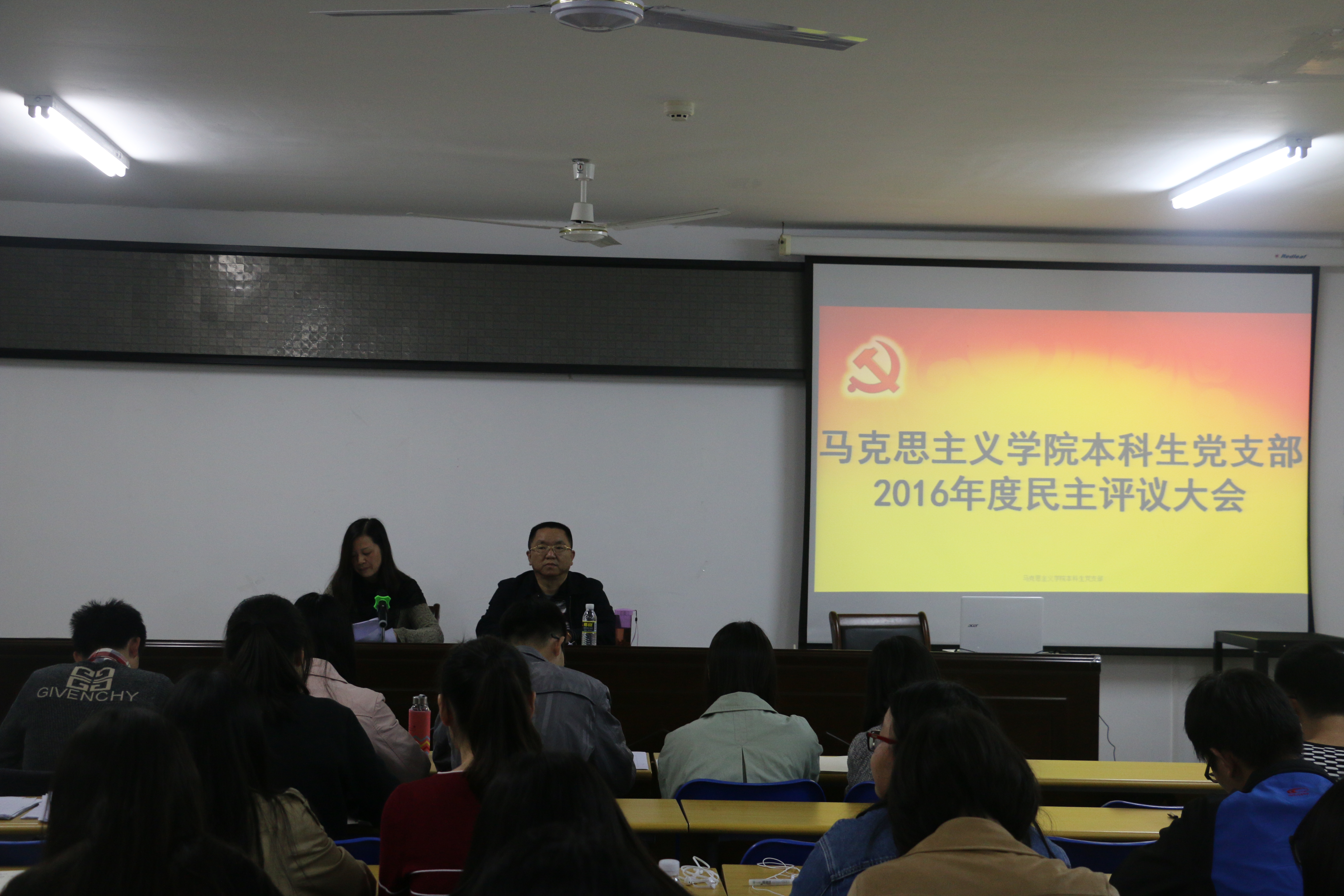 11月29日下午,永利官网本科生党支部在学院会议室召开了民主评议党员工作会议。学院党委书记段捷频出席,本科生党支部书记周郭军,马院本科生全体党员及部分学生群众参与。会议由周郭军主持。