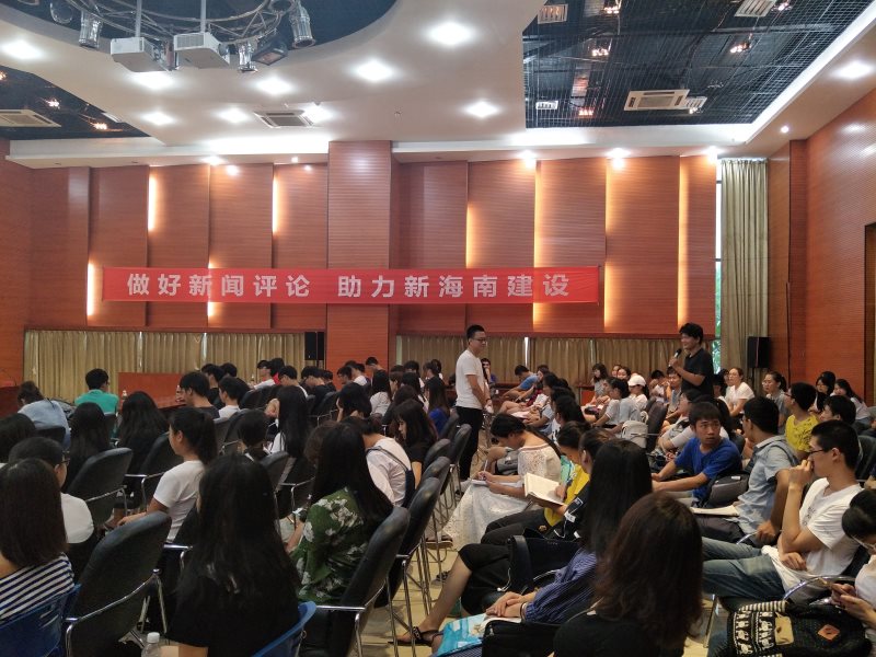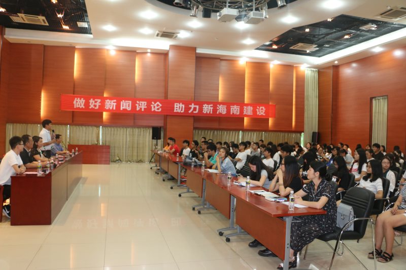 6月20日下午,永利集团88304官网在思源学堂多功能报告厅开展“做好新闻评论,助力新海南建设”的网络评论交流会。本次活动特邀海南广播电视总台办公室主任王玲,评论节目《海平面》主持人房瑶、海南新闻广播记者、评论员靳畅栋为主讲嘉宾。永利集团88304官网副院长李辽宁出席会议,思想政治教育系主任王善,团委书记周郭军、邵鹏鸣等教师代表以及学院全体本科生、研究生参加。交流会由王善主持。