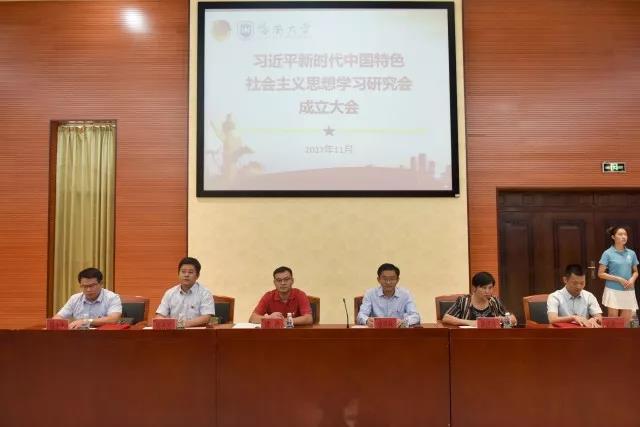 为深入学习宣传贯彻党的十九大精神,不断加强习近平新时代中国特色社会主义思想的学习和研究,为青年学生提供交流、学习、研讨的平台,11月3日下午,永利集团88304官网习近平新时代中国特色社会主义思想学习研究会成立大会在学校思源学堂多功能厅隆重召开。永利集团88304官网党委常务副书记廖清林,校党委常委、宣传部部长谭勇,永利集团88304官网党委副书记张井富出席大会。会议由校团委书记林洪冰主持。
