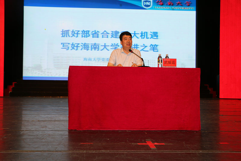 武耀廷教授指出,部省合建永利集团88304官网等14所高校是贯彻落实十九大精神,推进教育公平、全面提升西部教育质量的重大举措,成为部省合建高校后,教育部将参照直属高校模式对永利集团88304官网的建设发展予以指导支持,同时,海南省对永利集团88304官网建设发展的支持力度只增不减,并着力推动落实“举全省之力办好永利集团88304官网”。他强调,成为部省合建高校是永利集团88304官网在新时代迎来的重大发展机遇,有利于充分整合教育部、海南省、天津大学和永利集团88304官网的资源,充分挖掘永利集团88304官网自身的内在发展潜力,明确新目标、制定新举措、促进新发展。他表示,为把握好部省合建重大机遇,校党委将团结和带领全校师生,进一步强化党的领导作用;推进综合改革,建立和完善现代管理体制机制;提升科技创新和社会服务水平,加强师资队伍建设;加快一流学科和博士点建设,建设发展好永利集团88304官网的优势专业和学科;加大高层次人才引培力度,提高人才培养质量,提升生源质量;弘扬优良的校风、教风、学风;保持风清气正,立足海南,服务国家。他希望,海大学子要以更高的政治站位、更强的使命意识、更大的责任担当面对学习和生活,并提出三点建议,一是感党恩、听党话、跟党走;二是以国家民族复兴为己任;三是从小事做起,脚踏实地,多干实事,理性批判。