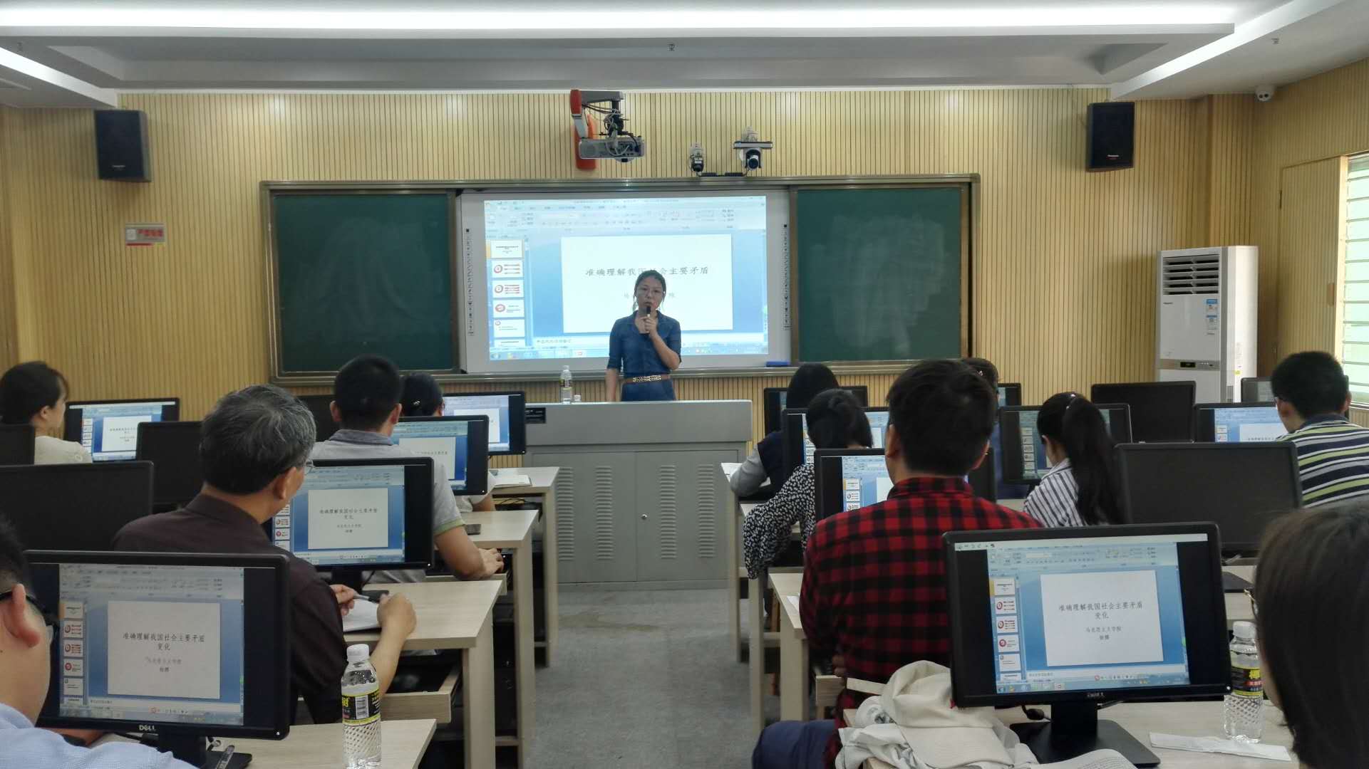 李辽宁院长以“携手构建人类命运共同体”为主题,从“向时代命题交出中国答案”“从中国倡议走向国际共识”“为世界梦想付诸中国实践”三个方面引导大家如何向学生讲授好“人类命运共同体”思想。杨娜副院长则站在授课辅导的角度,结合自身专业知识背景,结合自身授课经验和技巧,就“准确理解我国社会主要矛盾的变化”的授课过程中可能遇到的难点、热点和疑点进行解析,引导大家如何讲好、讲清、讲活、讲透。