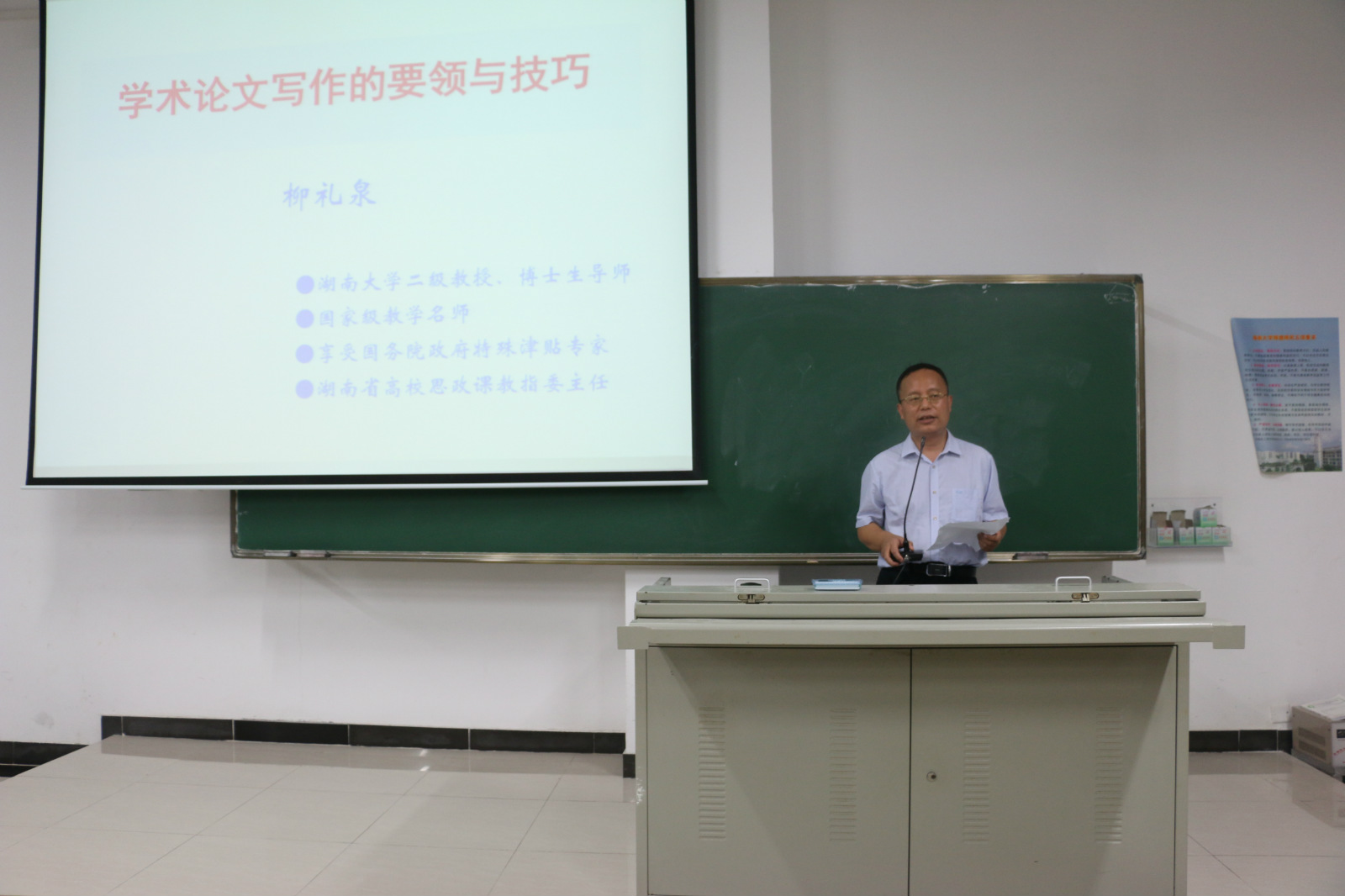 4月13日晚,永利集团88304官网第六期新时代论坛在5号教学楼111教室举举行,湖南大学柳礼泉教授应邀为永利官网全体学生作题为“学术论文写作的要领与技巧”的学术报告会。报告会由副院长王善主持。