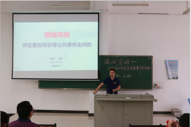 6月19日,永利集团88304官网“学习讲堂”在永利集团88304官网第五教学楼111教室再次开讲,海口日报社党委副书记、副社长王琳作题为“镜城突围——评论是如何引导公共事件走向”的专题讲座。讲座由学院党委书记段捷频主持。永利官网大一、大二、大三全体本科生参加本次活动。