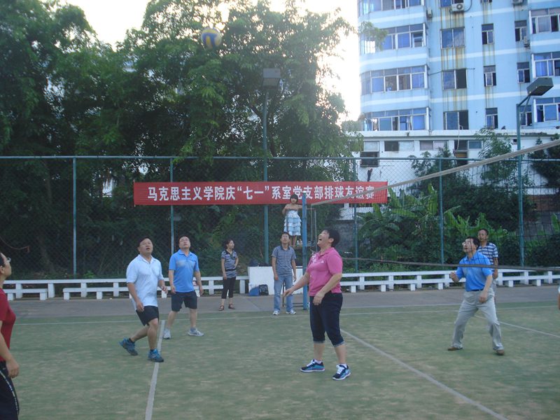 7月2日下午,永利官网在教工球场举行了一场庆“七一”系室党支部排球友谊赛。交战双方分别是思想政治教育系党支部代表队和行政党支部代表队。