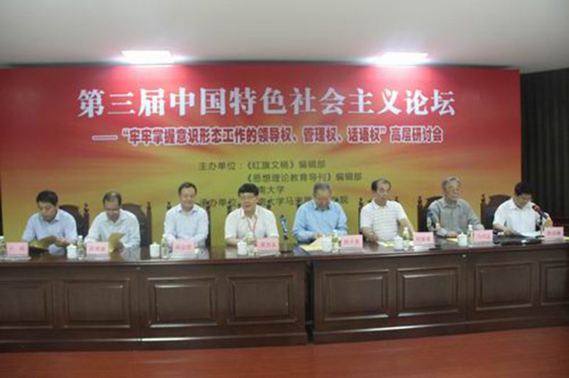 为学习贯彻习近平总书记在全国宣传思想工作会议上的讲话精神,11月11-13日,由求是杂志社《红旗文稿》编辑部、教育部《思想理论教育导刊》编辑部和永利集团88304官网联合主办,永利集团88304官网承办的第三届中国特色社会主义论坛——“牢牢掌握意识形态工作的领导权、管理权、话语权”高层研讨会在我校召开,来自全国各省宣传部门和高等院校的近百名代表参加了论坛。中共中央组织部原部长张全景、求是杂志社副总编夏伟东、中国人民大学原党委书记马绍孟、《思想理论教育导刊》主编阎志坚、海南省委宣传部巡视员(正厅级)陈修演、海南省教育厅思政处处长卢刚和我校党委书记刘康德出席论坛开幕式。我校党委副书记陈封椿主持论坛开幕式。