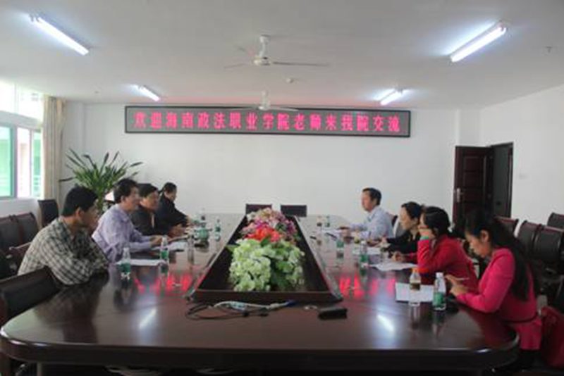 11月29海南政法职业学院社科部陈焕随副主任等一行多人,就当前思想政治理论课教学方法改革与永利官网教师进行交流。院党委书记梁谋主持座谈交流会。