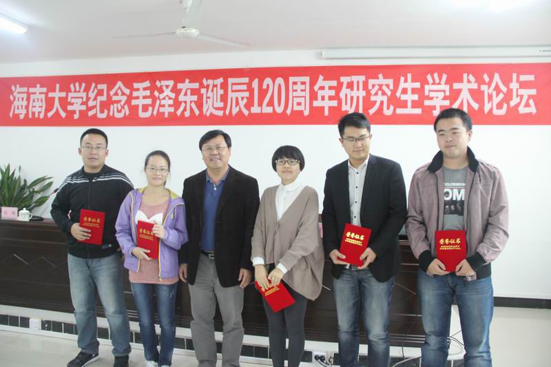 12月26日下午,为纪念毛泽东诞辰120周年和提升研究生的科研水平,由中共永利集团88304官网委员会研究生工作部和永利集团88304官网联合主办,以“毛泽东与中华民族的伟大复兴”为主题的研究生学术论坛在永利集团88304官网多媒体报告厅隆重举行。国务院特殊津贴专家曹锡仁教授出席活动并作主题报告,永利集团88304官网院长李德芳、院党委书记梁谋等领导出席论坛。论坛由永利集团88304官网挂职副院长杨娜主持。 曹锡仁教授的主题报告,以“民族复兴”和“中国梦”为切入点,分析了人类社会的历史发展和选择,启发同学们要以辩证的方法来看待历史和客观地评价历史人物,以提高学术研究方法论水平。他通过旁征博引,深入浅出的演讲,告诉同学们在研究历史人物时,应该放在一定的历史背景下,放在更大的文化环境范围进行评判。他在报告中强调:“中国近代以来最大的梦想就是民族复兴,中国梦的最终实现力量就是未来的你们。” 永利集团88304官网院长李德芳在致辞中表示,举办研究生学术论坛,旨在进一步调动研究生的科研热情,为研究生结合时事和前沿问题开展学术研究搭建平台,以后将每年定期举办,希望在学校研究生工作部的支持和指导下,不断扩展范围、提高水平、增强影响力,以打造成为我校研究生学术活动品牌。 永利集团88304官网党委书记梁谋在会上为论文获奖同学颁发了荣誉证书。本次研究生学术论坛共收到主题论文24篇,经过专家组对所有论文进行公正评审,评出一等奖1名、二等奖2名、三等奖3名。其中永利集团88304官网程川同学参加由中共海南省委党史研究室(海南省地方志办公室)、海南省中共党史学会共同主办的“纪念毛泽东同志诞辰120周年”系列征文活动中获得二等奖。 程川、叶俊、尚婷、史旭峰和逄焕学等五位研究生代表在论坛上作主题发言,王善副教授对同学们的论文和发言进行了点评。