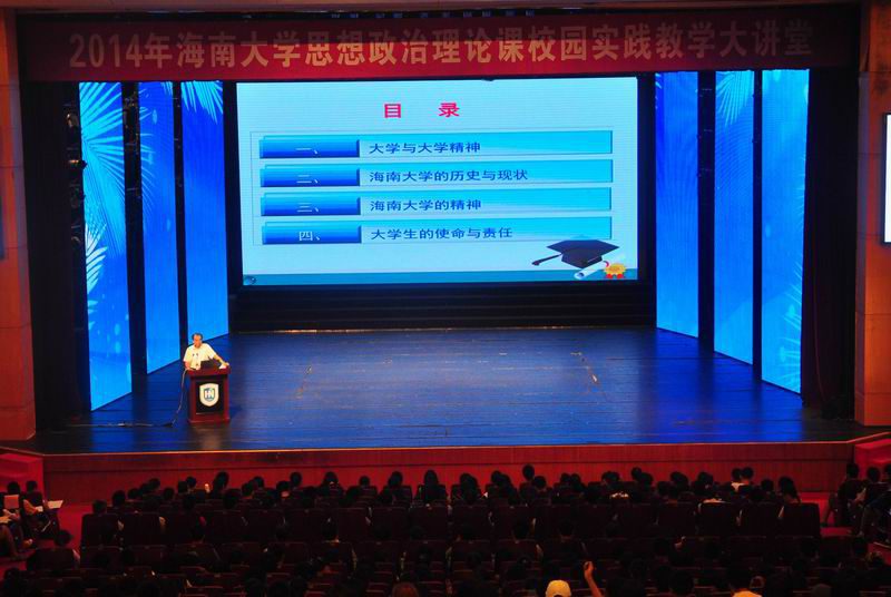 刘康德教授从大学与大学精神、永利集团88304官网的历史与现状、永利集团88304官网的精神和大学生的使命与责任四个方面展开了一场精彩的演讲。 刘康德教授在报告中结合自身经历、运用大量国内外著名高校的相关图片和资料,阐述了现代大学的起源、功能和本质;引领同学们回顾了永利集团88304官网的辉煌历史、优良传统和大学精神;深刻诠释了“海纳百川、大道致远”的海大校训和“自强敬业、厚德弘毅”的海大校风。他在报告中着重强调了学校当前在推进内涵发展重要时期的办学理念,对提升“两个力”进行详细解读,提升学生的社会竞争力和教师的社会影响力,关键在于注重培养学生的思想力、意志力、亲和力、学习力、实践力、适应力、创造力;提升教师的学术影响力、教学影响力、社会服务力、文化传承与创新力。刘康德教授指出,大学生的第一要务是学习;二是要有理想;三是要有责任感。他要求每个海大学子继承和弘扬海大人牢记使命、报效祖国的爱国精神;埋头苦干、无私奉献的敬业精神;严谨治学、精益求精的科学精神;海纳百川、包容开放的协作精神;自强不息、勇攀高峰的创新精神,彰显海大人海纳百川的大气,坚持真理的正气和敢于创新的勇气。让这些精神成为我们一代代海大人励精图治,追求卓越的恒久动力和不竭的精神源泉。他希望,同学们积极弘扬和践行海大精神,把中国梦、海大梦和自己的梦有机结合起来,为推动学校加快实现内涵提升、不断向百强高校目标迈进做出应有的贡献。