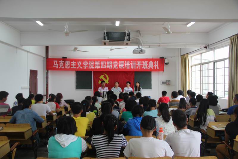 2014年11月11日下午,永利官网第四期党课培训班在永利集团88304官网城西校区教学楼8B01室开班。正在城西校区开展党的群众路线之“三个一”活动的校党委书记刘康德莅临开班仪式现场和同学亲切交谈并作重要讲话。院党委书记段捷频出席,60多名入党积极分子参加开班仪式。开班仪式由张君成老师主持。