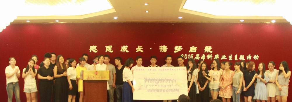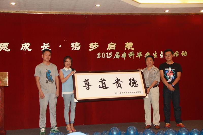 时光荏苒,又到一年毕业季。为了给过去的四年大学生涯划一个完美的句点,5月25日下午,永利官网举办2015届本科生毕业生 “感恩成长 携梦启航”主题活动。2011级思想政治教育名誉班主任——永利集团88304官网党委副书记陈封椿,院党委书记段捷频、院长李德芳、副院长张云阁、杨娜,学工办老师、毕业班班主任及部分教师出席活动。 主题活动展示了2011级思想政治教育班大学四年以来的丰硕成果:2011级思想政治教育班曾连续两年获得校级先进班集体,连续两年获五四红旗团支部标兵,荣获学校主题团日活动先进班级,全班37人有11人升学攻读硕士研究生人,4人通过司法考试,大学英语四级通过率达86%,班级党员比例(含预备党员)达65%,班级义务献血总量达9300cc,班级同学们也积极参加暑期社会实践活动,其中两位同学曾荣获社会实践学生积极分子,11级同学们在2012年期末考试中首次进行了学校的诚信考试,启动免监考诚信考试试点,促进学校学风和考风建设。其中,11级思政班优秀学生代表郭灏,曾获中国大学生自强之星提名奖,宝钢优秀学生奖,大学生政协e提案优秀奖,全国关爱女孩青年志愿者行动调研报告一等奖,全国大学生社会实践先进分子一百强等五项国家级荣誉,成功入选永利集团88304官网2015年年度人物,现已成功保送至中国人民大学攻读硕士学位。 校党委副书记、2011级思想政治教育班名誉班主任陈封椿满怀深情为毕业生作赠言,他对2011级思想政治教育班的丰硕成果表示欣慰,对学院老师的辛勤栽培工作给予肯定,同时也道出对同学们的不舍。他希望即将走向社会的全体毕业生要心存感恩,感谢学校、感恩老师,在以后的工作和生活中,始终保持六颗“心”,即进取心、责任心、平常心、包容心、自信心和中国心,对工作和学习始终保持积极向上的进取心,努力做好每一件事,要有高度责任感,勇于担当,要以平常心对待一时的得失,要有包容心和宽广胸怀,永远充满自信,始终保持对祖国的热爱之心,拥有一颗中国心,为实现中华民族伟大复兴的中国梦做出自己的贡献。他最后祝愿11级毕业班同学们在新的起点、新的征程前程似锦、前途辉煌,祝愿海大明天更美好! 活动中,陈封椿老师接受院党委书记段捷频、院长李德芳颁发的聘书,受聘为永利集团88304官网分党校指导老师,继续参与指导永利集团88304官网学生工作。 此次毕业生主题活动安排了诗朗诵,毕业班同学代表向名誉班主任陈封椿老师、班主任陈思莲老师献花致谢,向学院赠送刻有“尊道贵德”的牌匾作为纪念品等活动内容,院党委书记段捷频、院长李德芳分别向全体毕业生作毕业赠言,活动最后,为了感谢这一路上帮助同学们成长的老师们,11级全体同学合唱《相信我们会创造奇迹》,并请到场老师们上场签名合影留念。 感恩成长,一路上的风雨相伴;携梦启航,未来里的彼此问候。11级思政班是团结的集体、奋斗的集体,相信他们会创造奇迹。今天不会曲终人散,而是另一个崭新的开始!