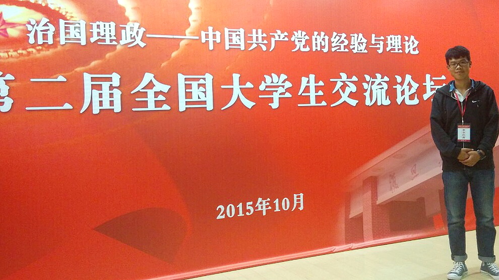 10月17日至18日,“治国理政—中国共产党的经验与理论”第二届全国大学生交流论坛在上海复旦大学举行。教育部社科中心副主任赵军,上海市教卫党委副书记、市教委副主任高德毅,复旦大学党委副书记刘承功等出席论坛开幕式。永利官网2014级倪圣茗同学论文入选并应邀参加论坛,与来自清华大学、复旦大学、南京大学、东北师范大学等其他高校的百余名同学一同参会研讨,并在分论坛做了发言。 在分论坛中,倪圣茗同学就其论文《中国共产党权力监督的历史演进路径》做简要阐述,该论文由陈招万老师指导,将由复旦大学统一结集出版。