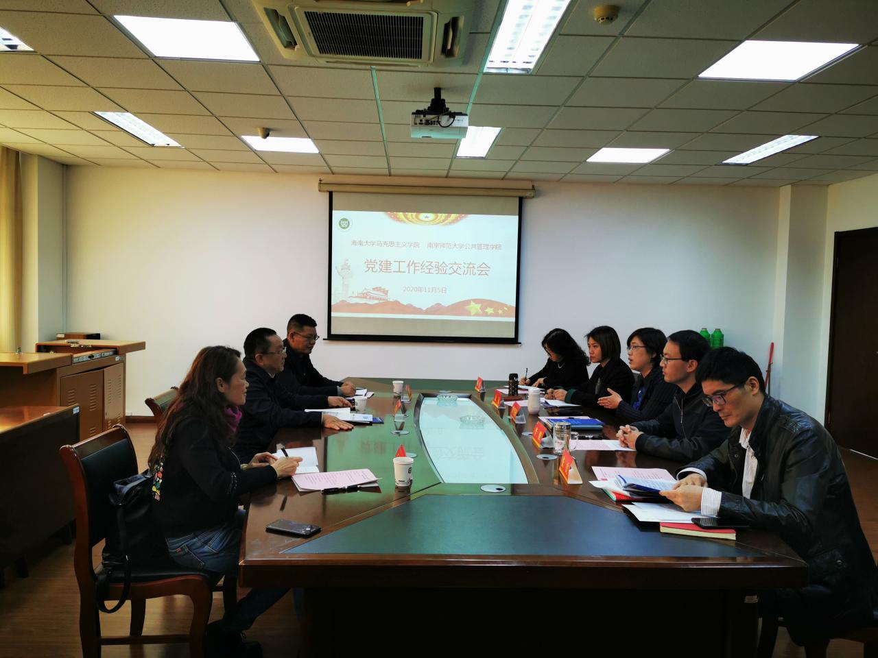 11月4-7日,院党委书记段捷频、院党委委员、研究生党支部书记张君成、院党建组织员、行政党支部书记王齐冰一行到南京师范大学公共管理学院调研,朱冬梅书记介绍了学院基于教师成长与发展需要的特色党建工作,双方就党支部标准化、规范化建设的经验和做法、如何抓党建促进学院发展等方面进行了深入探讨。在南京大学哲学系调研期间,系党委书记周爱群、党委委员、副主任孙乐强等参加座谈交流会,周爱群介绍了学院概况、发展目标、队伍建设、学科建设等方面工作,并重点围绕党建工作分享了宝贵经验和做法。