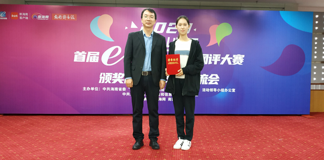 12月29日,2020海南首届“e海瑞评”网评大赛颁奖仪式在海南日报社举行。永利集团88304官网荣获“优秀组织奖”,永利集团88304官网2019级思想政治教育专业学生许缘圆荣获一等奖。