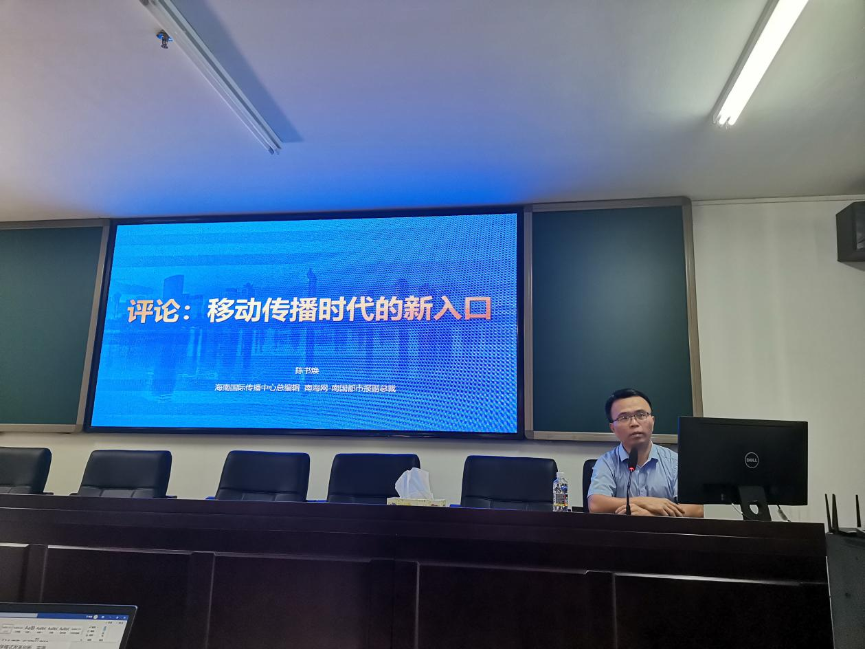 11月13日下午,永利集团88304官网第26期形势与政策时事论坛在社科楼A309报告厅举办,南海网—南国都市报副总裁陈书焕受邀为永利集团88304官网师生作主题为《评论:移动传播时代的新入口》的专题报告,学校“形势与政策”授课教师及部分学生积极参加报告会。