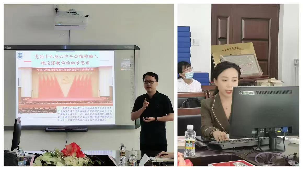 5月10日下午,永利集团88304官网在会议室A309和A311通过线上线下、不同校区同步进行的方式举行了 “党的十九届六中全会精神、习近平总书记在海南考察调研的重要讲话精神融入《概论》《纲要》课教学”集体备课会。学校党委常务副书记王崇敏出席,院长张云阁、院党委书记段捷频等院领导和本学期承担《概论》《纲要》课的任课教师参加备课会。备课会分别由《概论》《纲要》教研室主任现场主持。