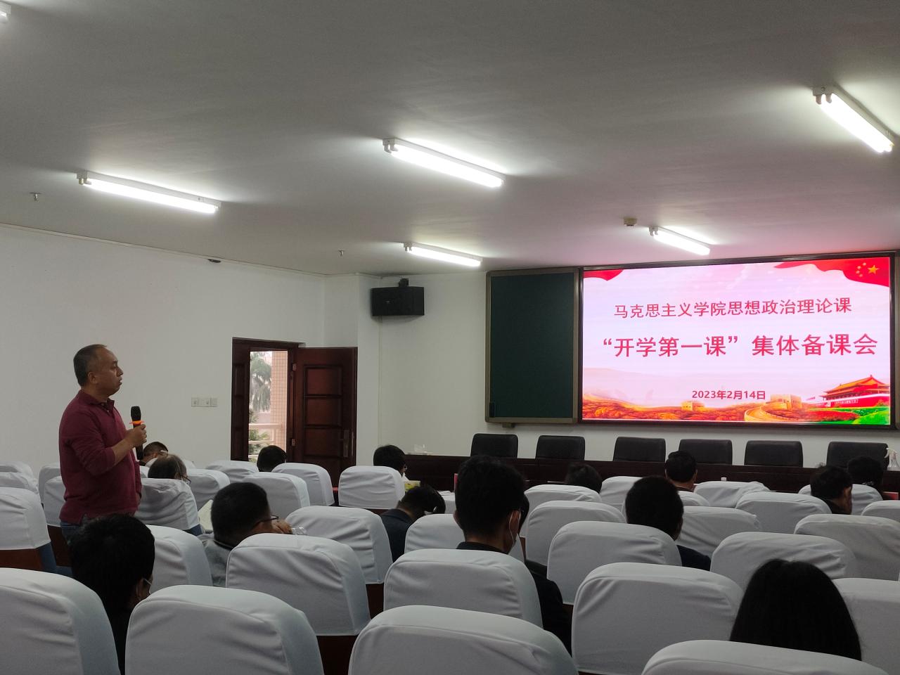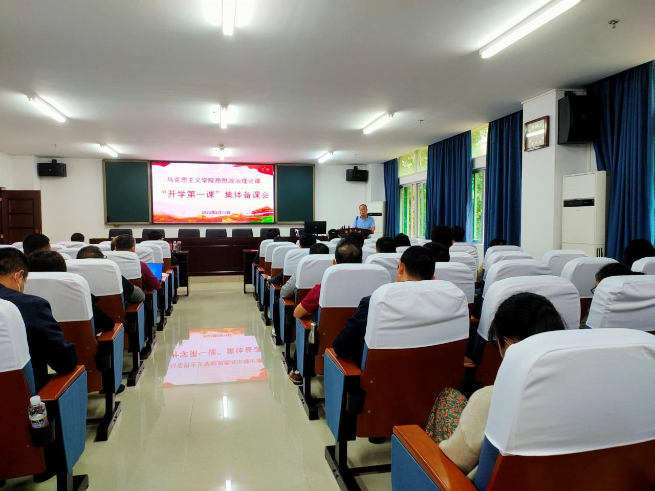 2023年2月14日下午,为深入学习宣传贯彻党的二十大精神,更好地发挥思政课在落实立德树人根本任务中的关键作用,进一步提升思政课教学质量,永利集团88304官网召开思想政治理论课“开学第一课”集体备课会。校党委书记符宣国、校党委常委、副校长梁谋、校党委常委、宣传部部长韩淑梅出席;学院领导班子、全体思政课专任教师和书院“形势和政策”课部分教师参加。学院教学督导委员会主任、学院教学委员会副主任贺尧夫老师主持。