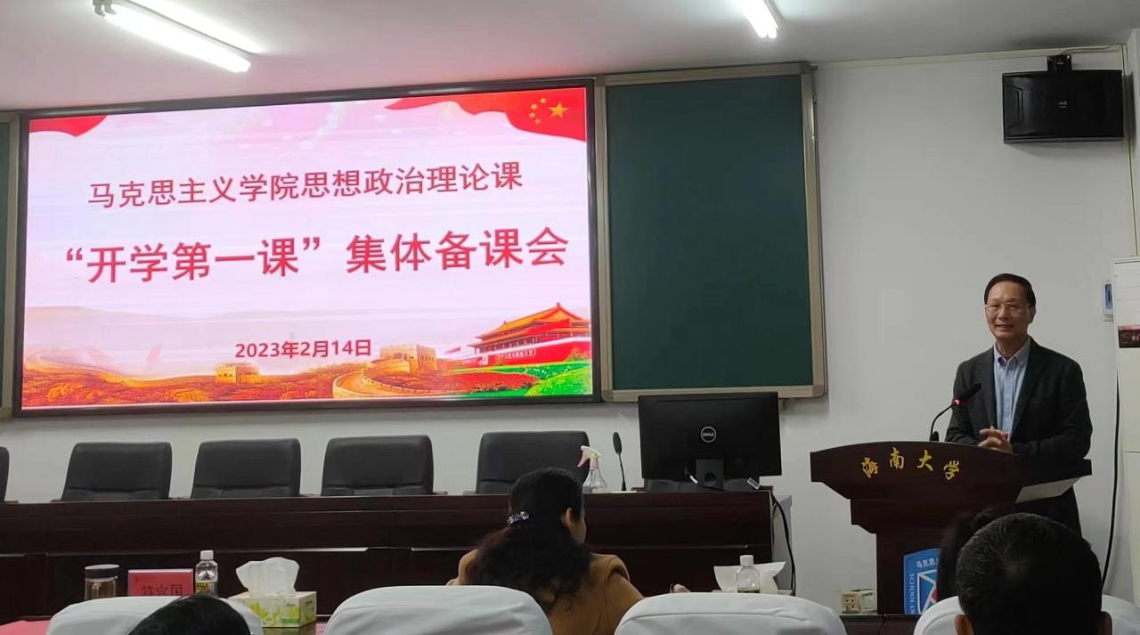 会议第一个阶段,学院副院长王善传达学习了教育部、省教育厅等有关组织开展2023年春季学期“开学第一课”活动的文件精神和相关要求,安排了学院本学期思政课集体备课等工作。