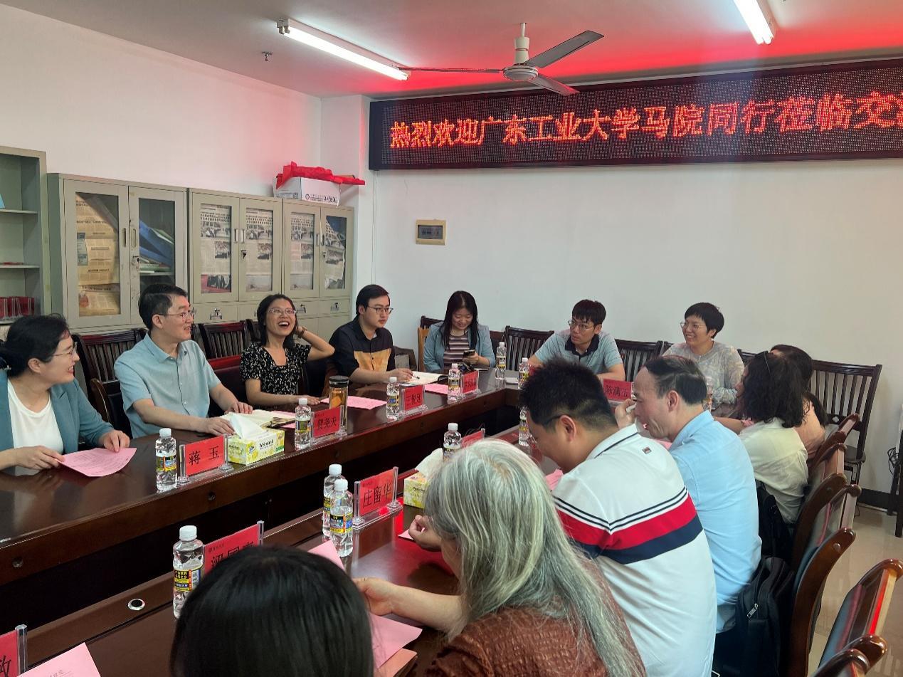 广东工业大学思想道德与法治教研室同仁来永利官网交流互动,增进了彼此之间的交流,有助于永利官网教师积极借鉴学习同仁的教育教学新模式、新理念,进一步推动永利官网学科建设的创新发展。