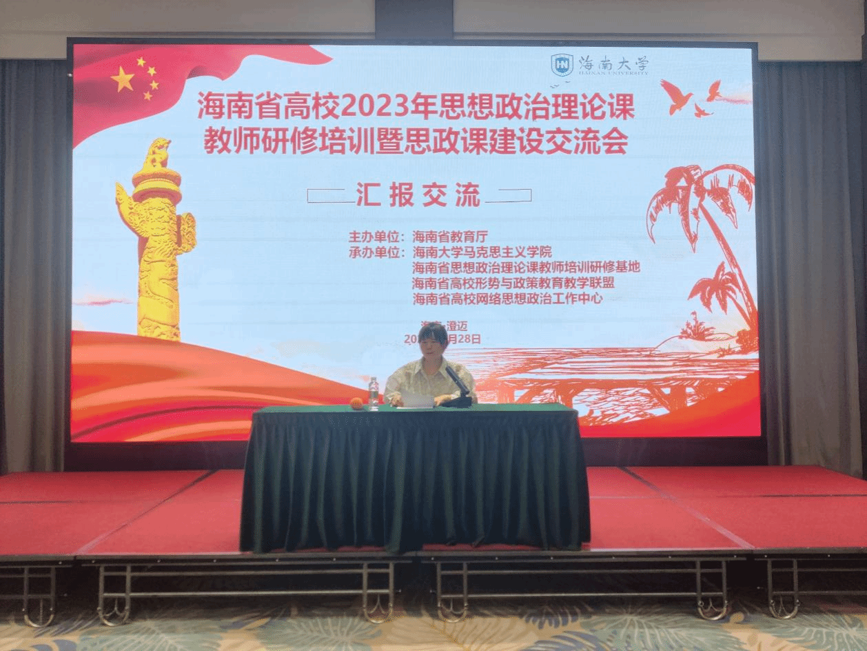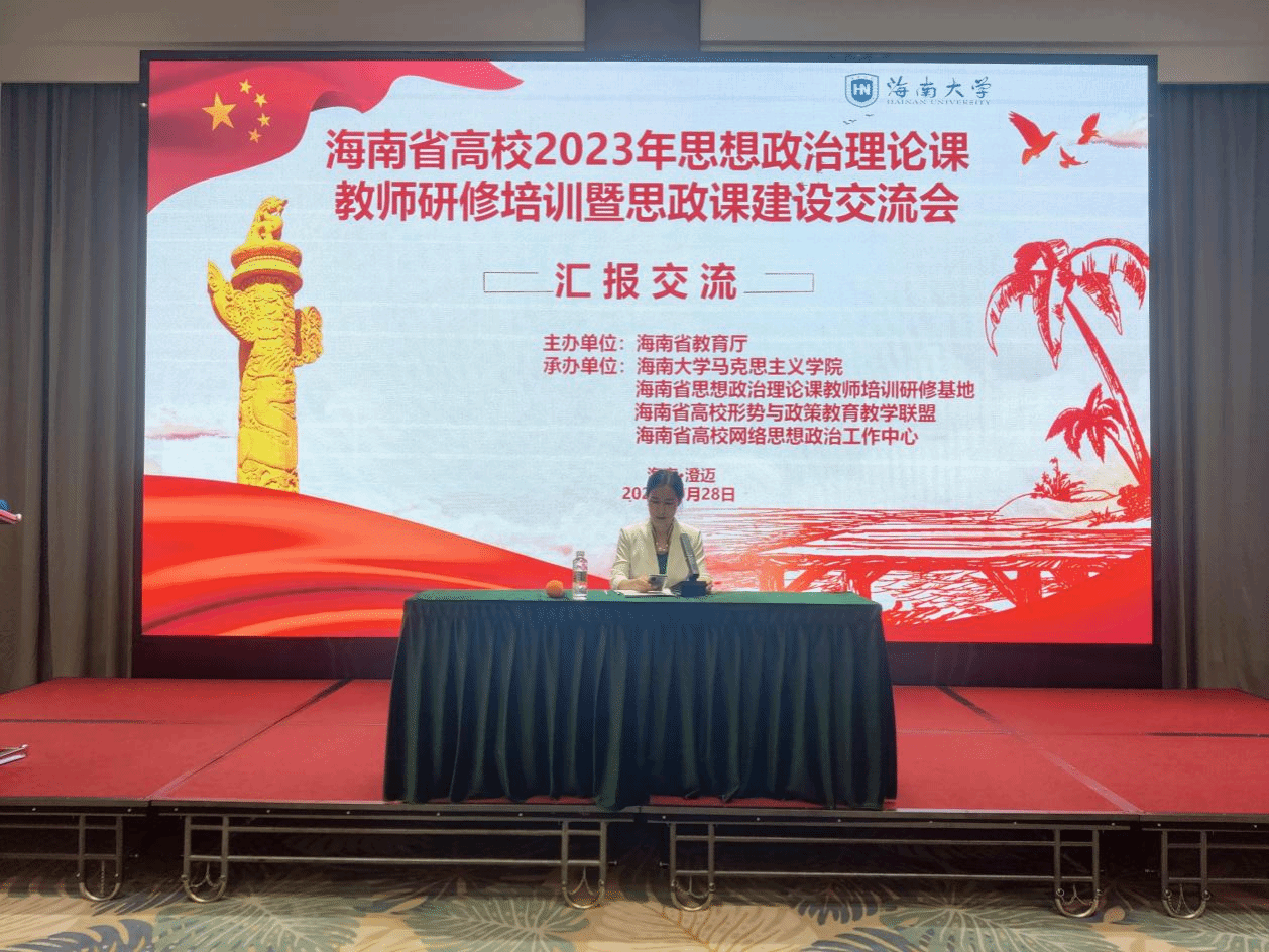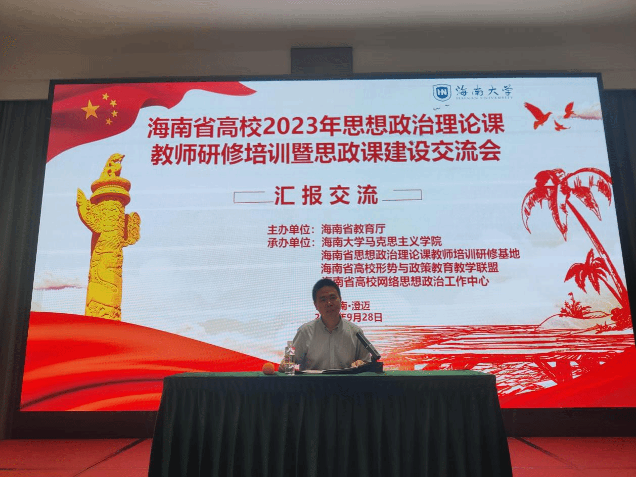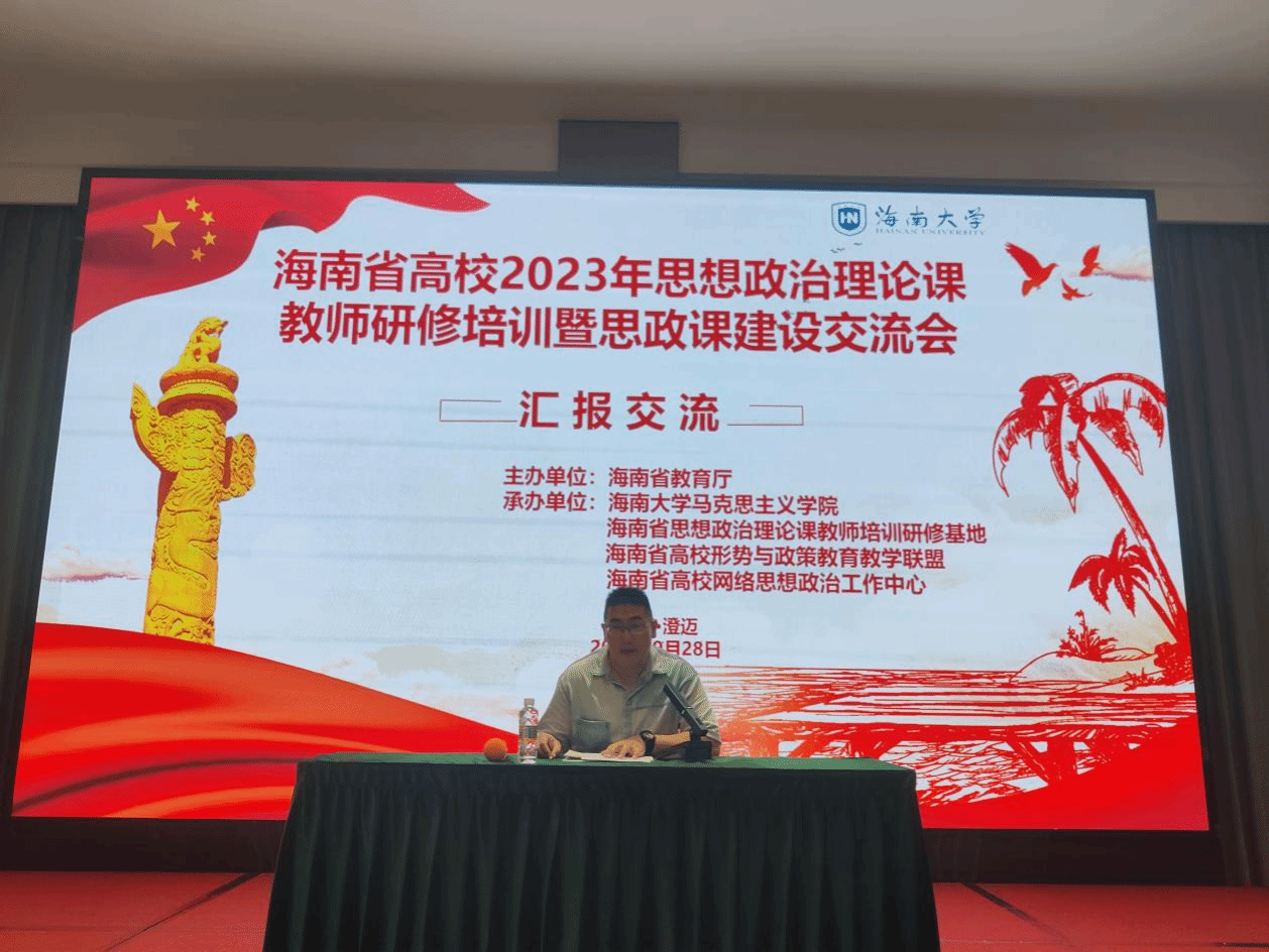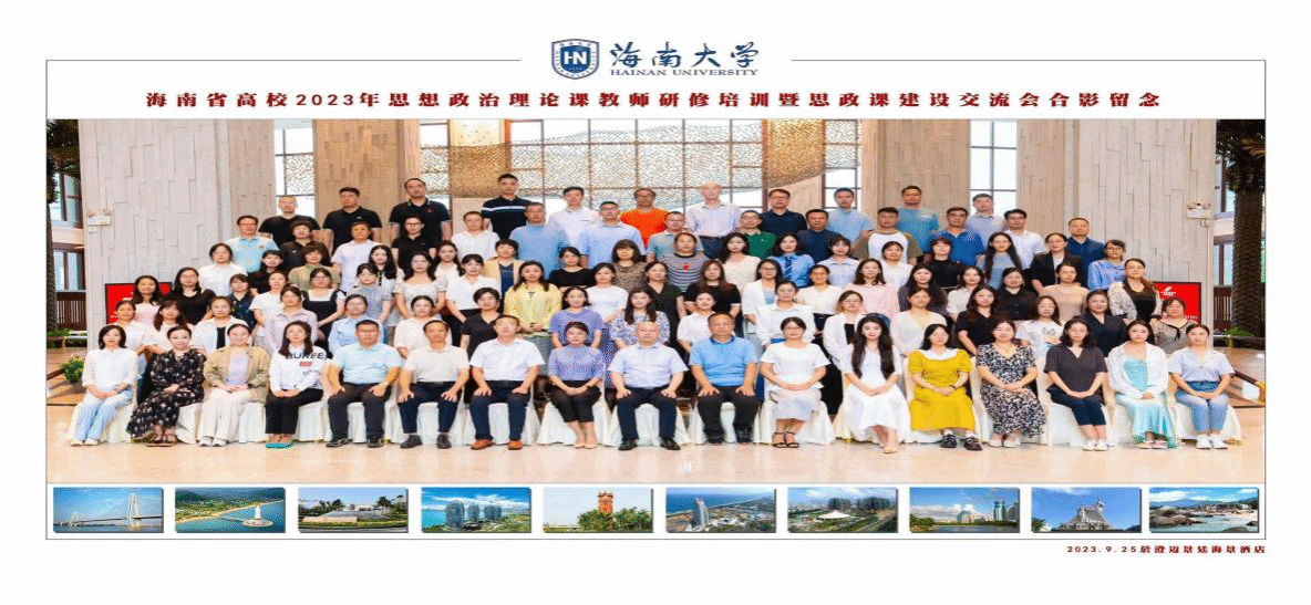 为深入贯彻落实党的二十大精神,提升我省高校思想政治理论课教师队伍建设水平,2023年9月25日至9月28日,海南省高校2023思想政治理论课教师研修培训暨思政课建设交流会在海南省澄迈县举行。本次研修班由海南省教育厅主办,永利集团88304官网、海南省思想政治理论课教师培训研究基地、海南省高校形势与政策教育教学联盟和海南省高校网络思想政治工作中心承办,来自海南省内22所高校95位思政课教师参会。