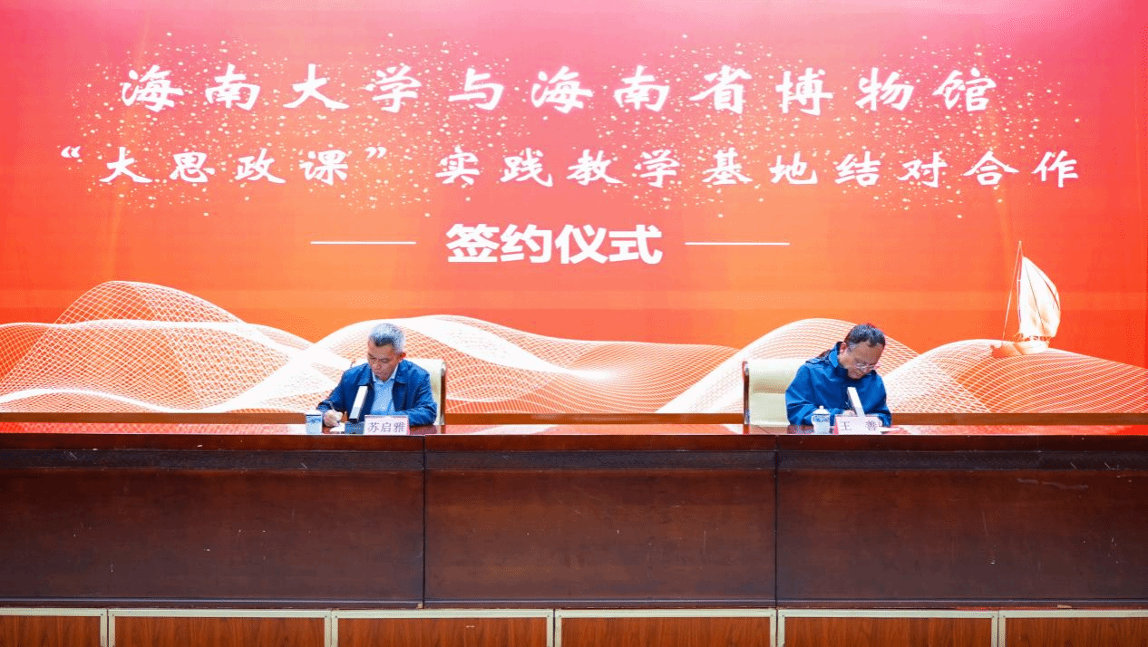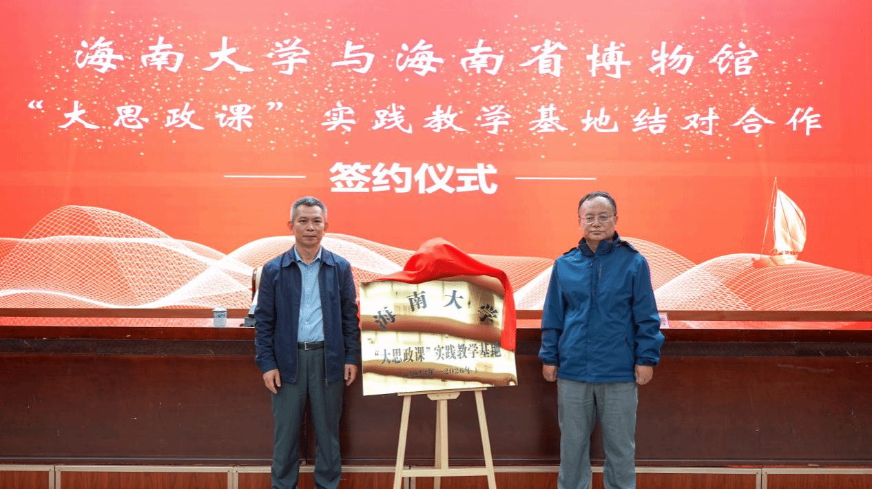 仪式中,海南省博物馆馆长苏启雅与永利集团88304官网副院长王善共同签署《“大思政课”实践教学基地结对合作协议》,并为“大思政课”实践教学基地揭牌。