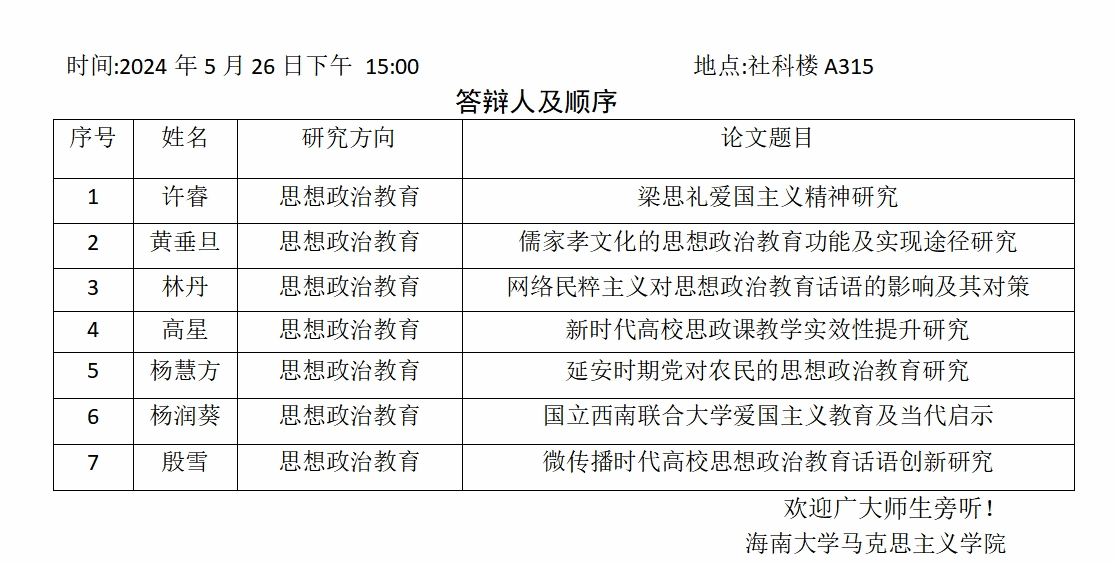 永利集团88304官网2024届(上)研究生学位论文答辩公告(四)