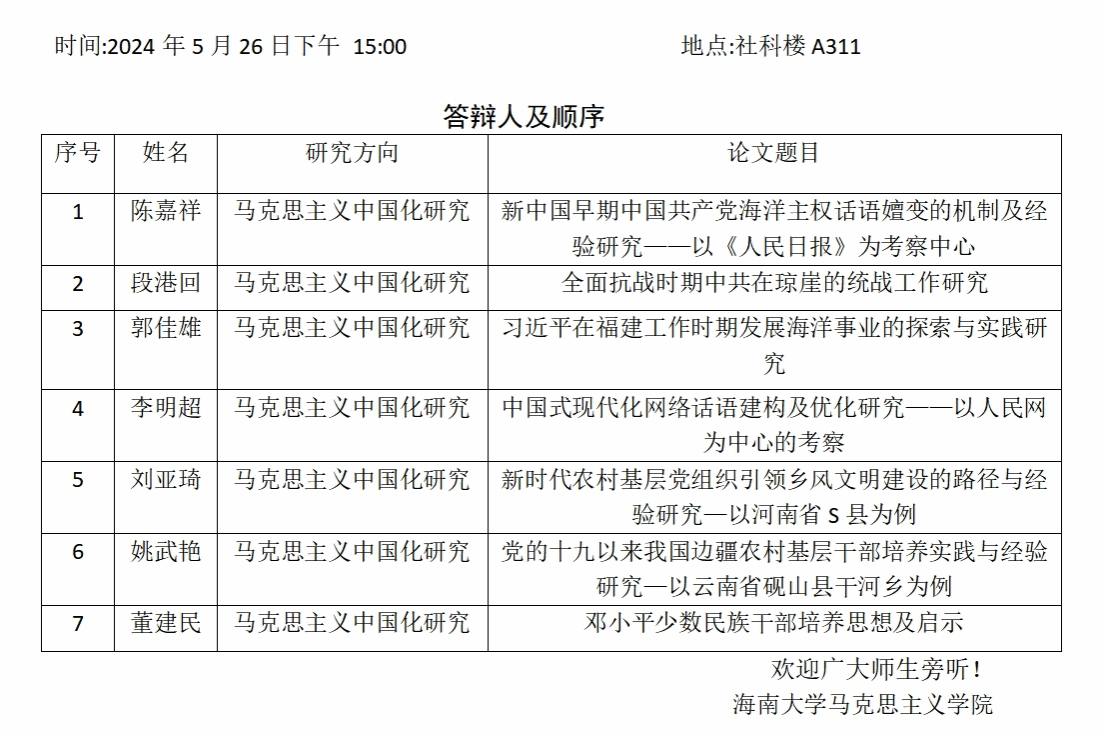 永利集团88304官网2024届(上)研究生学位论文答辩公告(五)