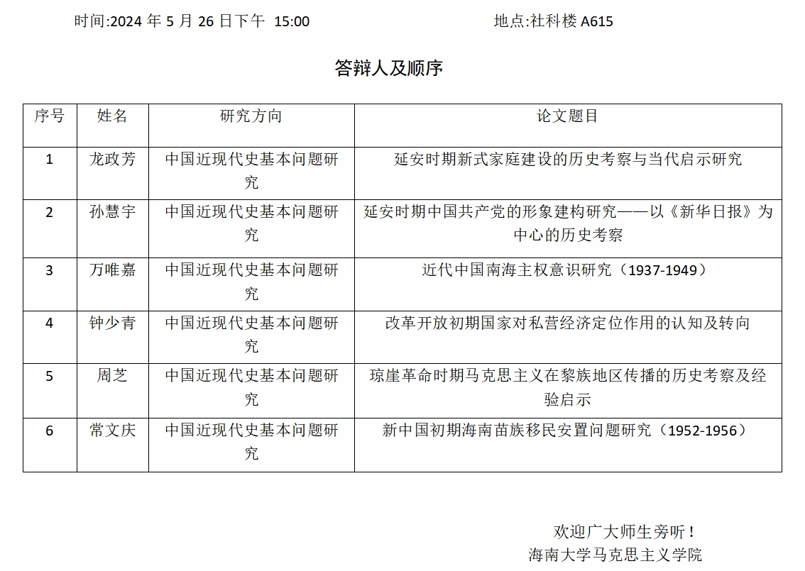 永利集团88304官网2024届(上)研究生学位论文答辩公告(六)