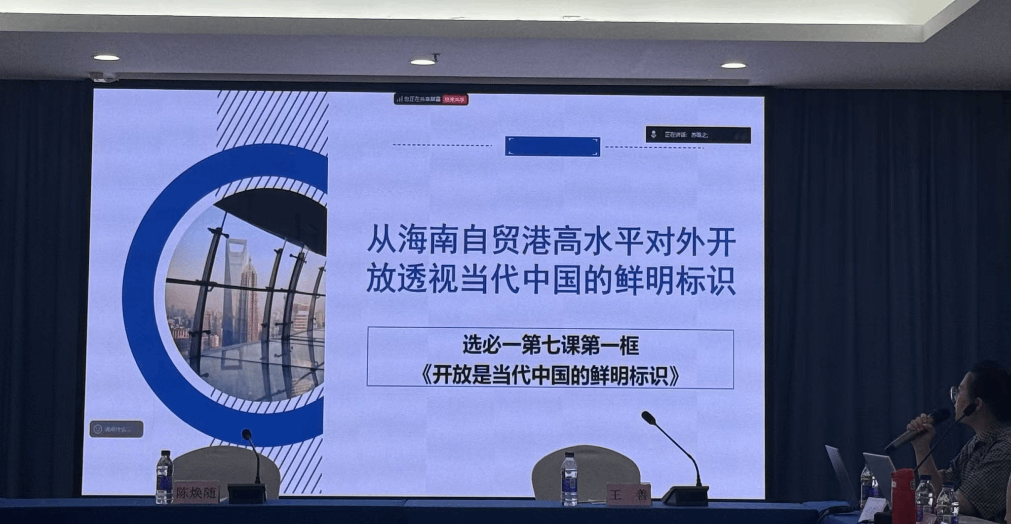 来自永利集团88304官网等四位老师围绕“高水平对外开放在海南自贸港的创新实践”进行了“同题异构”教学展示。上海师范大学附属儋州实验学校的吴丽贞老师通过与AI小椰对话形式,让课堂在生动活泼的氛围中实现了知识的传递;东方市铁路中学的杨宗舒老师用“知信行”的理念践行国家战略到个人行动的落实;临高县临高中学的陈莹老师用“我与自贸港”,从小案例到海南上升至国家,诉说了不是“追随者”,而应是“引领者”的青年责任;永利集团88304官网的安睿颖老师以“是什么、为什么、怎么做”贯穿,“国际循环和国内循环”的供需为理论抓手,用“围棋布局”思维,讲述了国家战略到海南实践的制度指引与实践创新之路。
